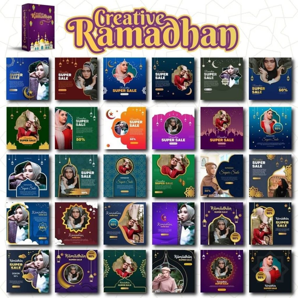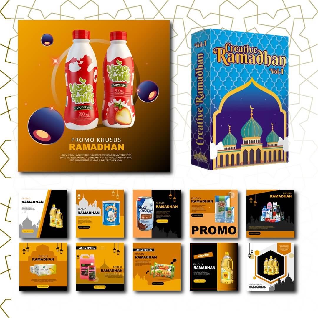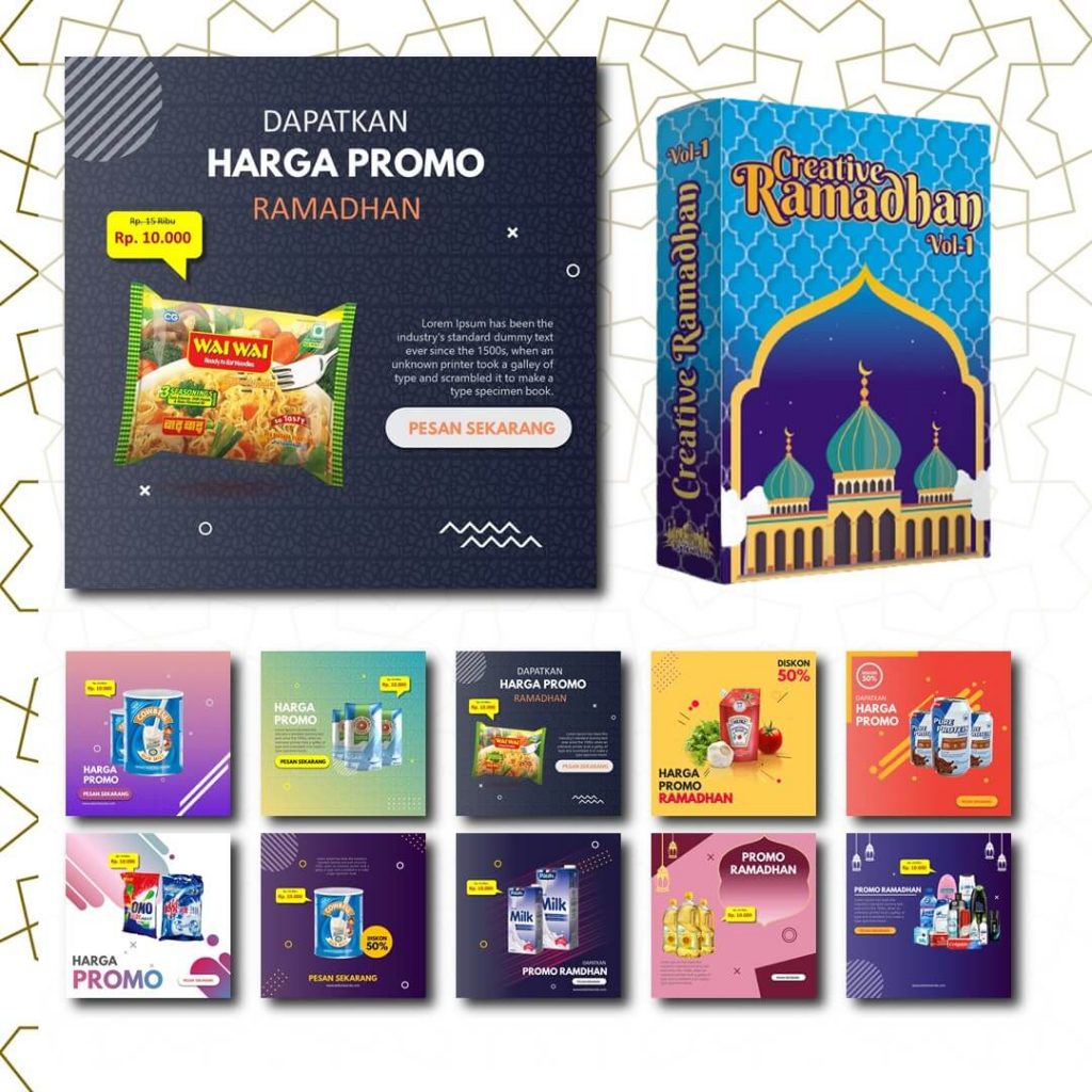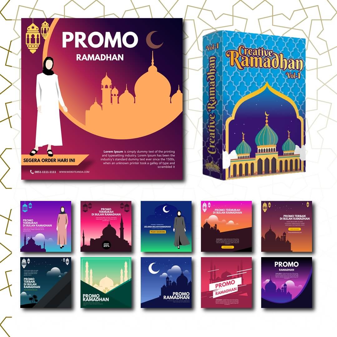 Creative Ramadhan adalah Kumpulan template Banner Promosi, Video Ucapan Idul Fitri, dan lain-lainnya. Total Creative Ramadhan Vol 2 berisi 200+ template..