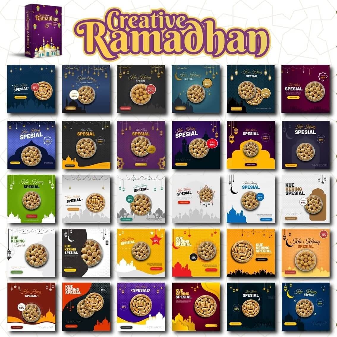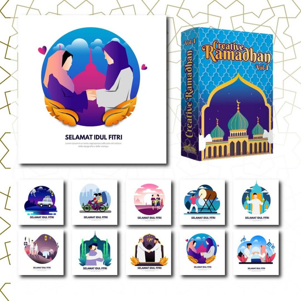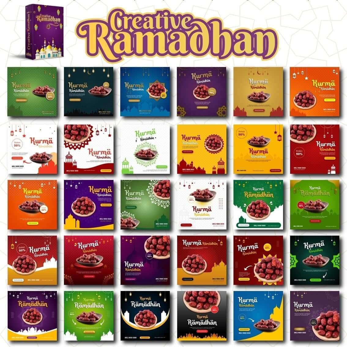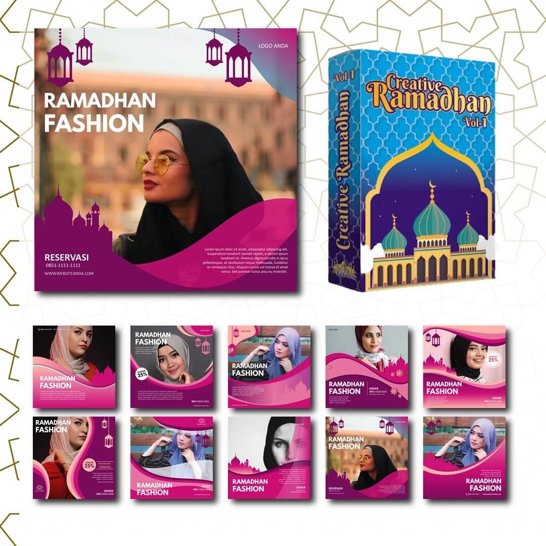 Creative Ramadhan adalah Kumpulan template Banner Promosi, Video Ucapan Idul Fitri, dan lain-lainnya. Total Creative Ramadhan Vol 2 berisi 200+ template..